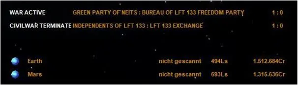 Informationen über Konflikte im System und wertvolle Planeten die du noch nicht gescannt hast