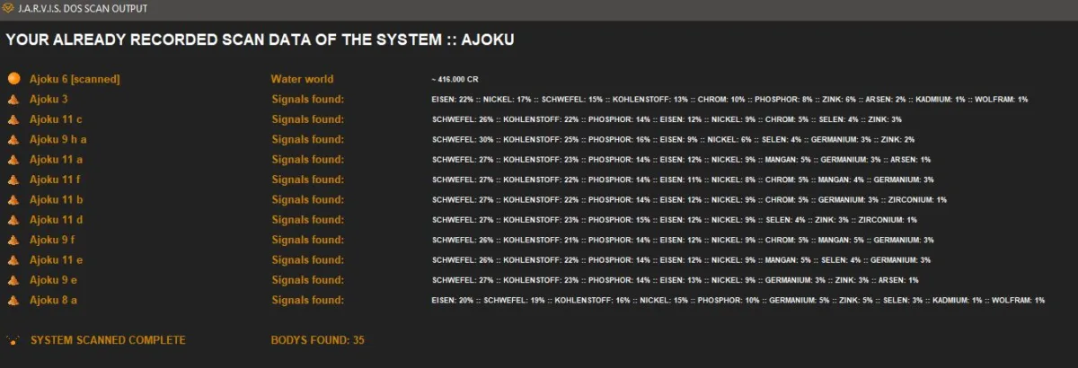 - Biologische Planetensiqnale (VSS Scanner = Anzahl | Oberflächen Scanner = Namen)